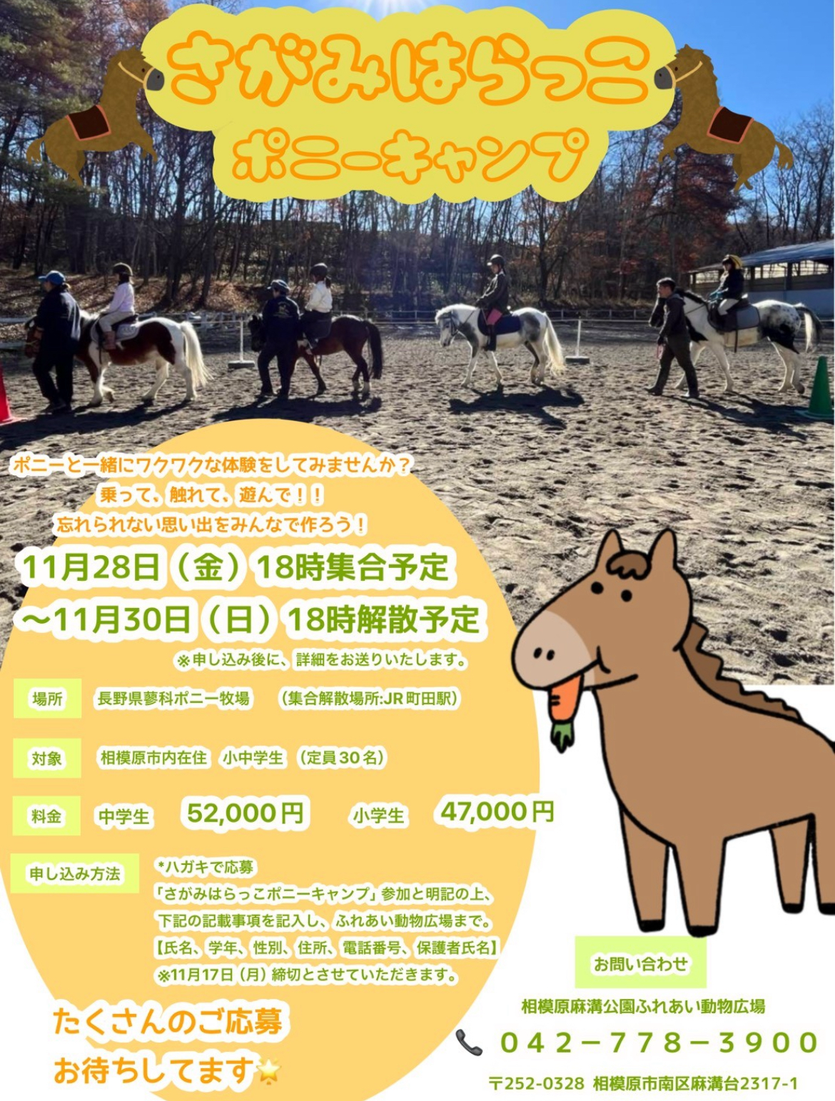 11月に実施する『さがみはらっこポニーキャンプ』の募集です!!