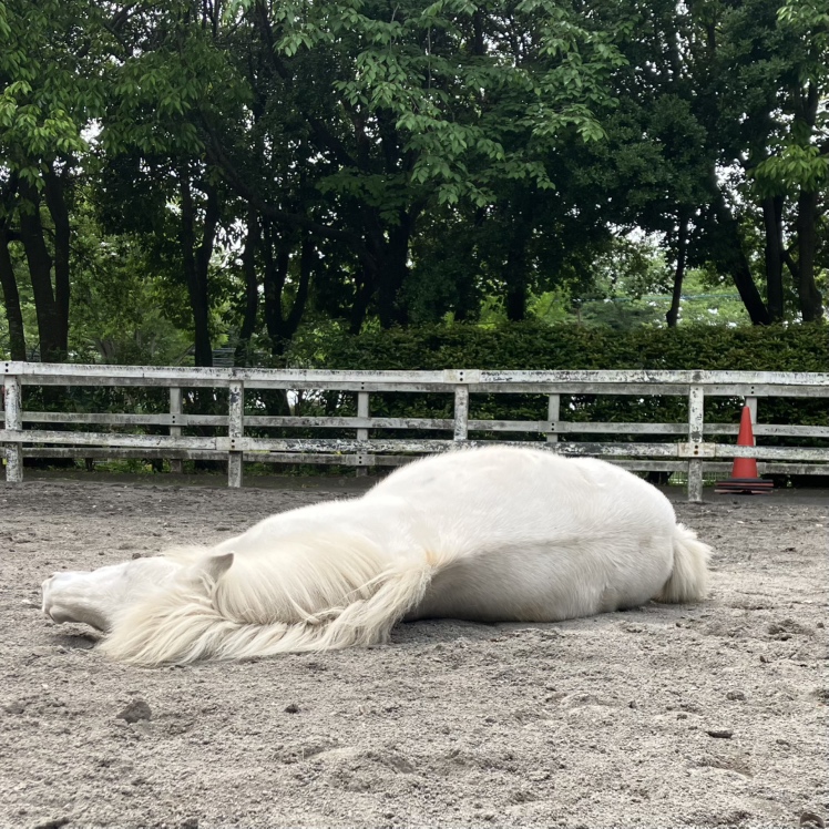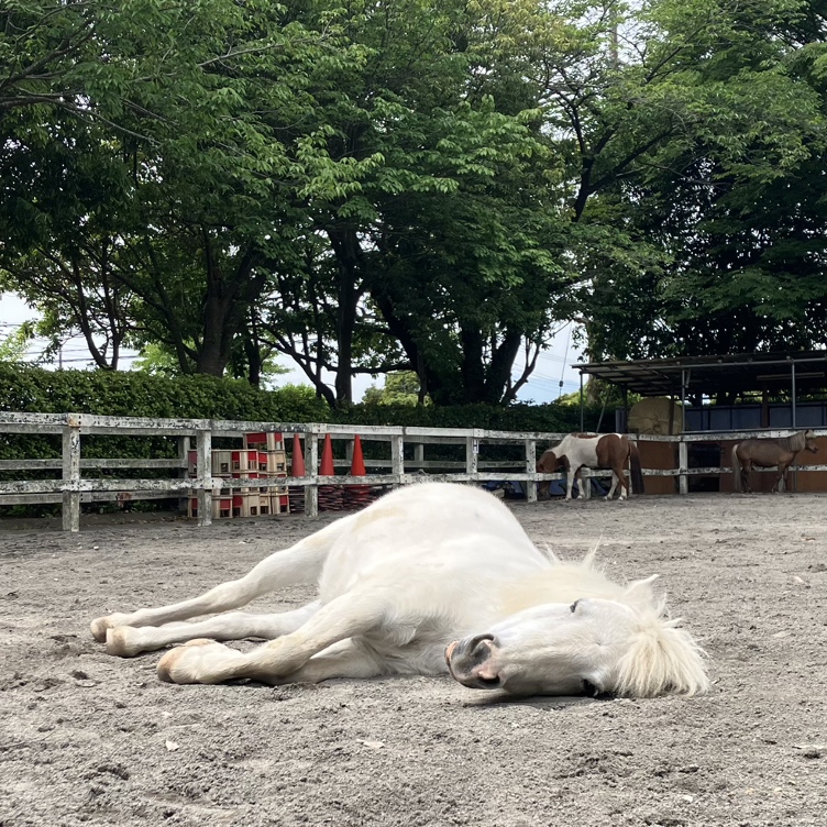 皆さんも広場にご来場いただいた際は、のびーーっと寝ているポニーがいないか、静かに観察してみてください👀