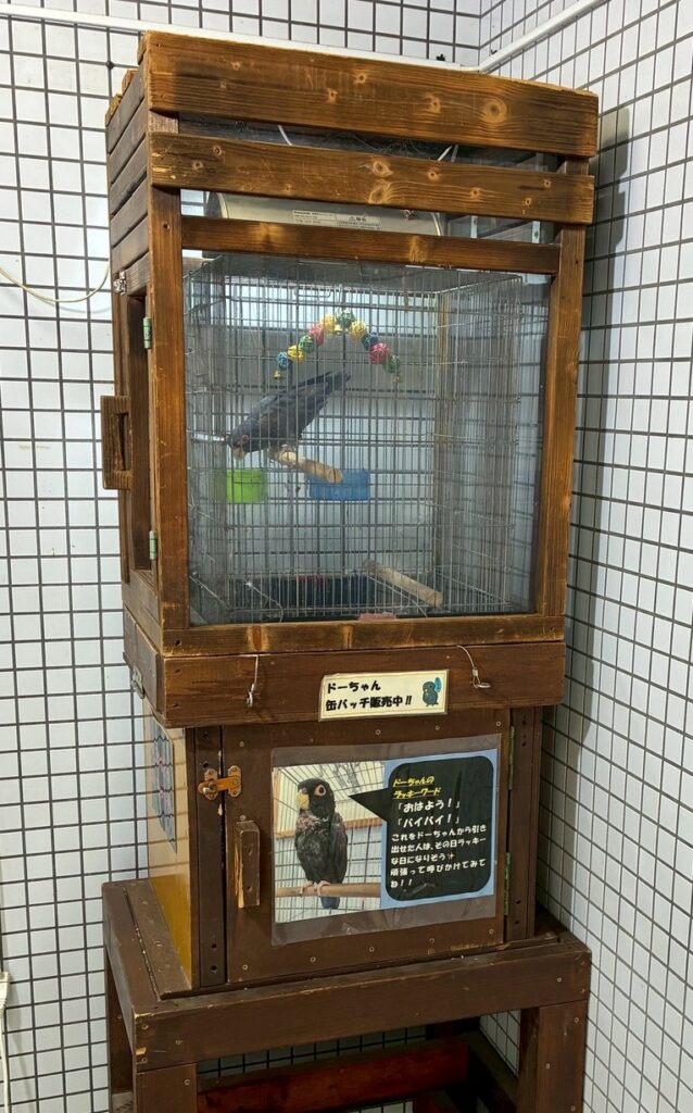 いつも動物広場の管理棟にいるドーちゃんはドウバネインコといって希少性の高い鳥種で国内では目にすることが珍しいインコです。
