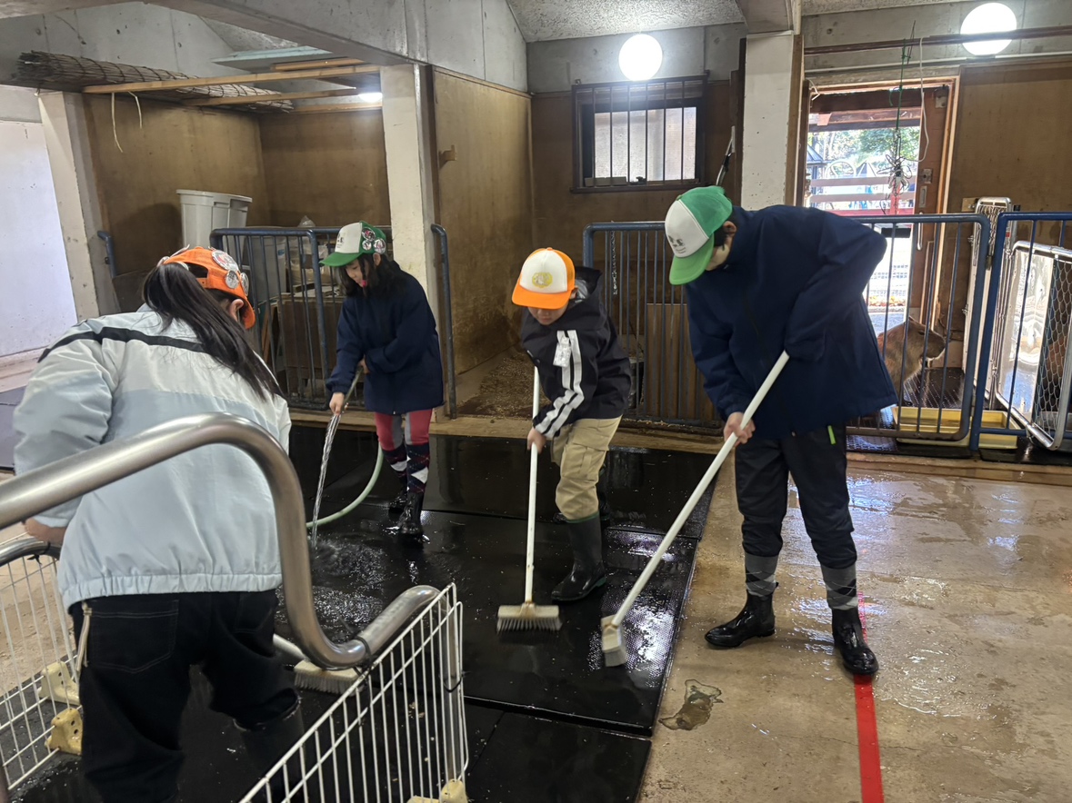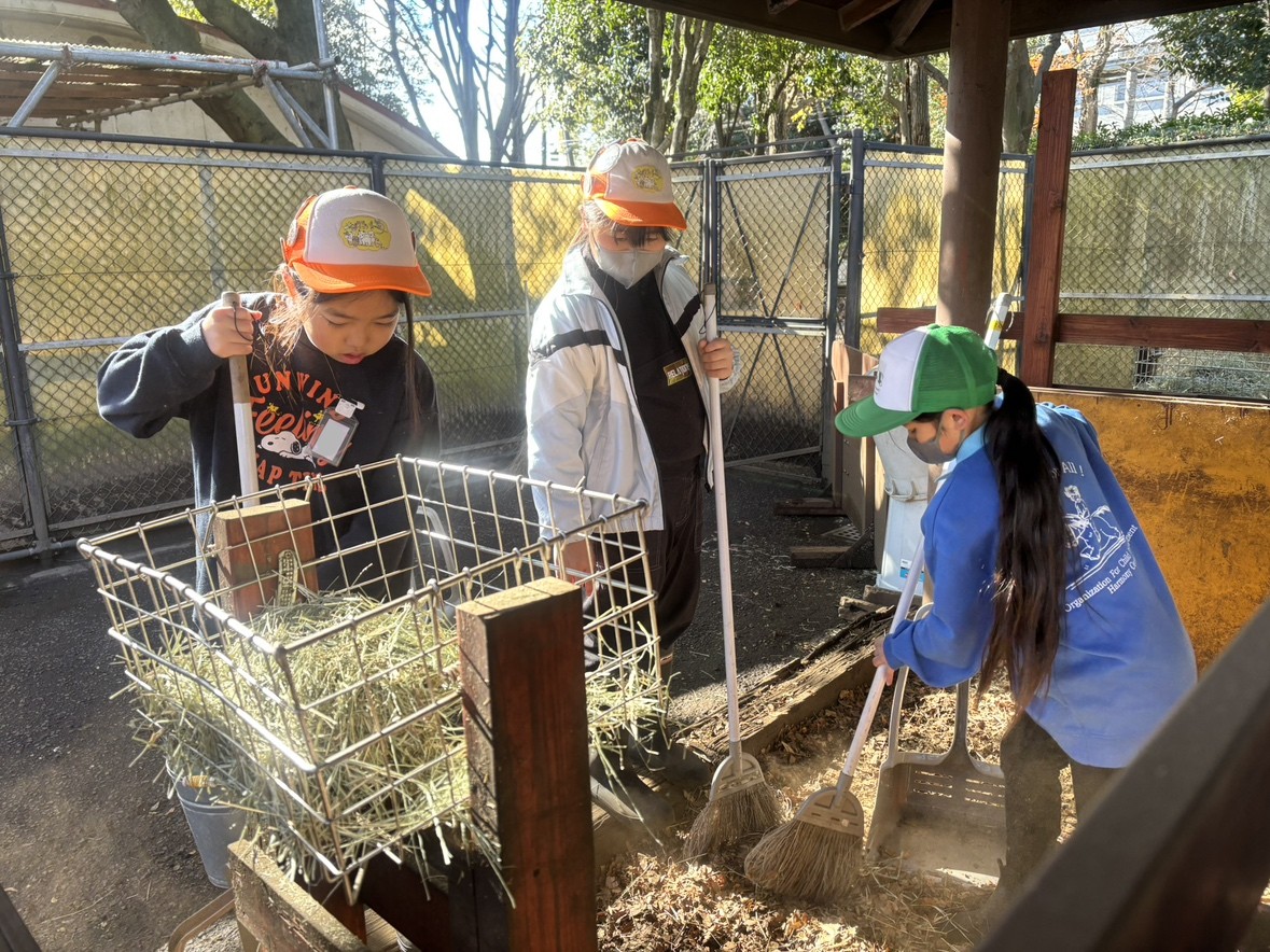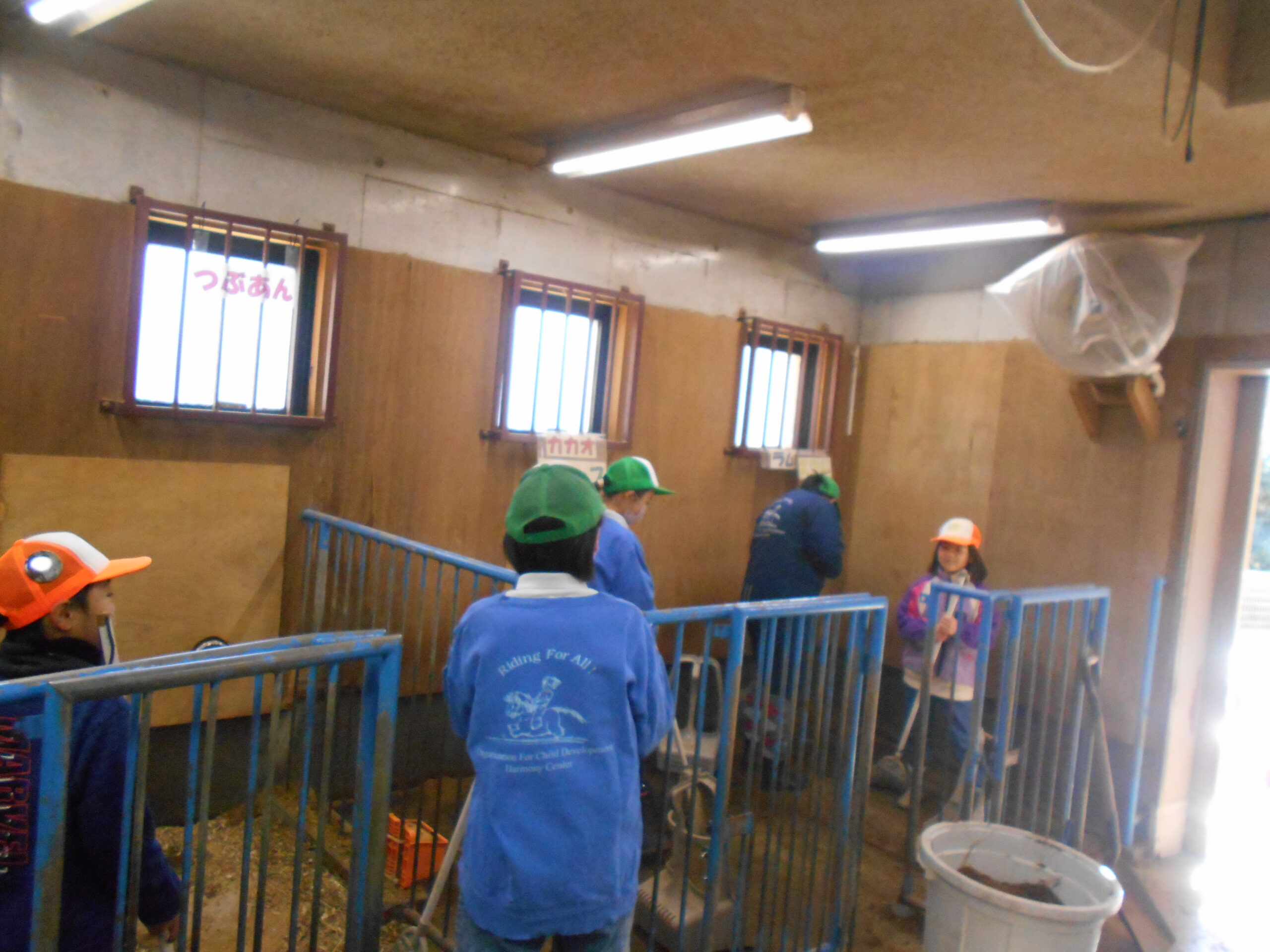 午前中はふれあい、展示、ポニーに別れてそれぞれの動物のお世話をしました。