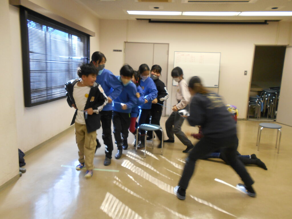 スタッフが考えたゲームをチームで協力して挑戦していました!