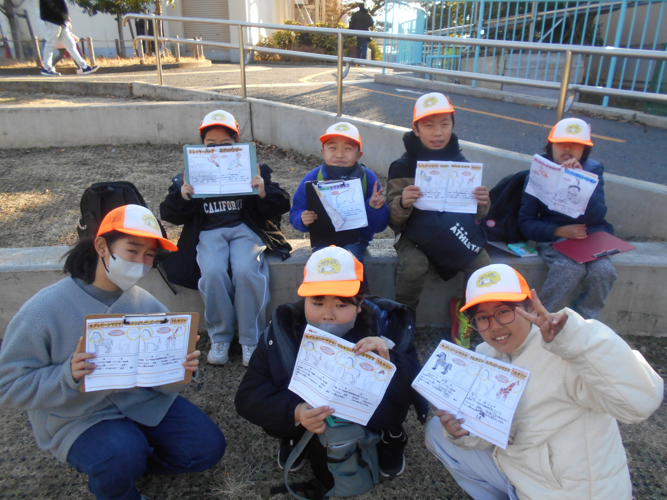 そして、後半は観察する動物を交代して園内を回り・・・完成した図鑑と記念撮影!