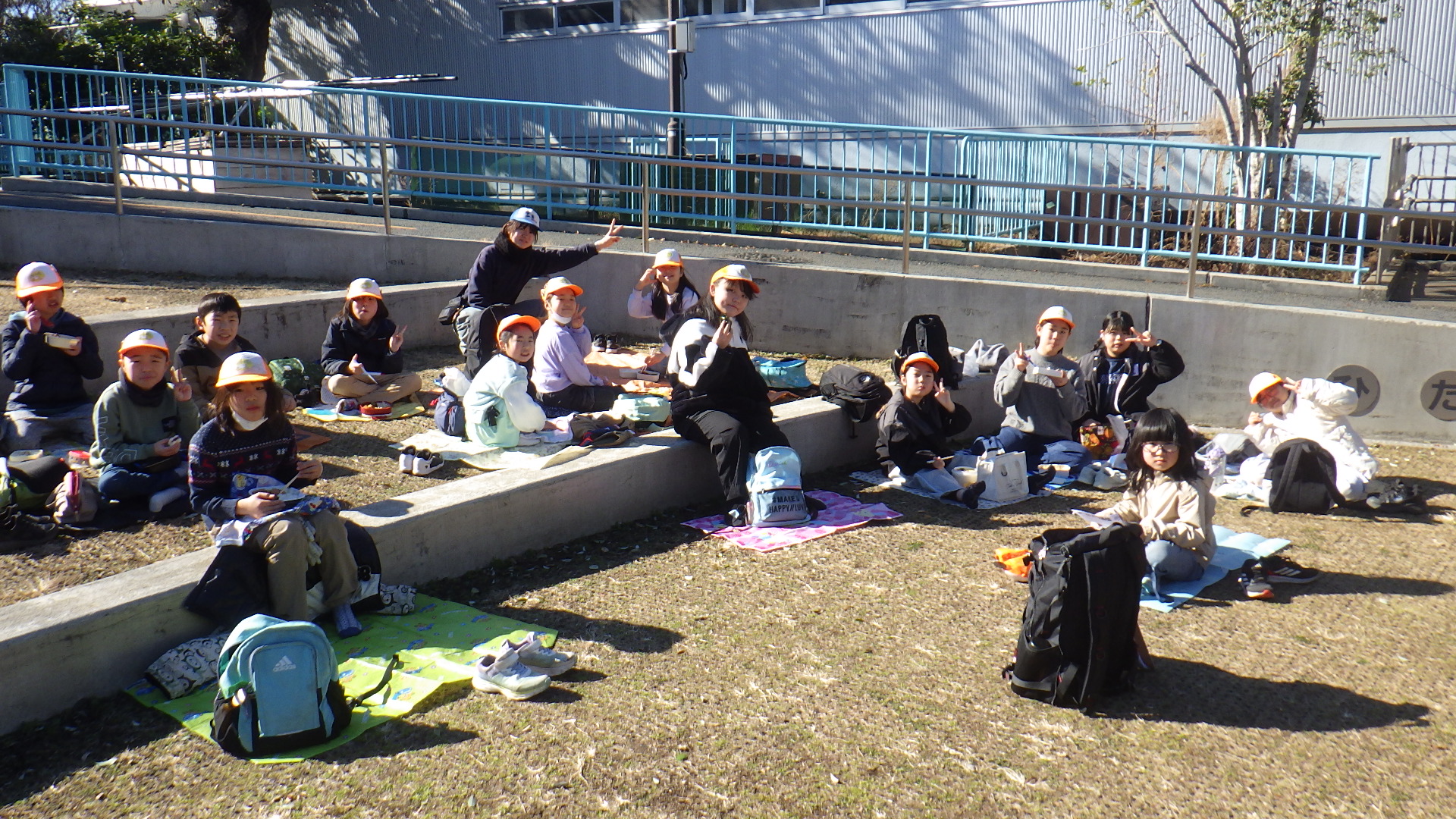 レジャーシートを敷いたりして、みんなでごはんタイム!
