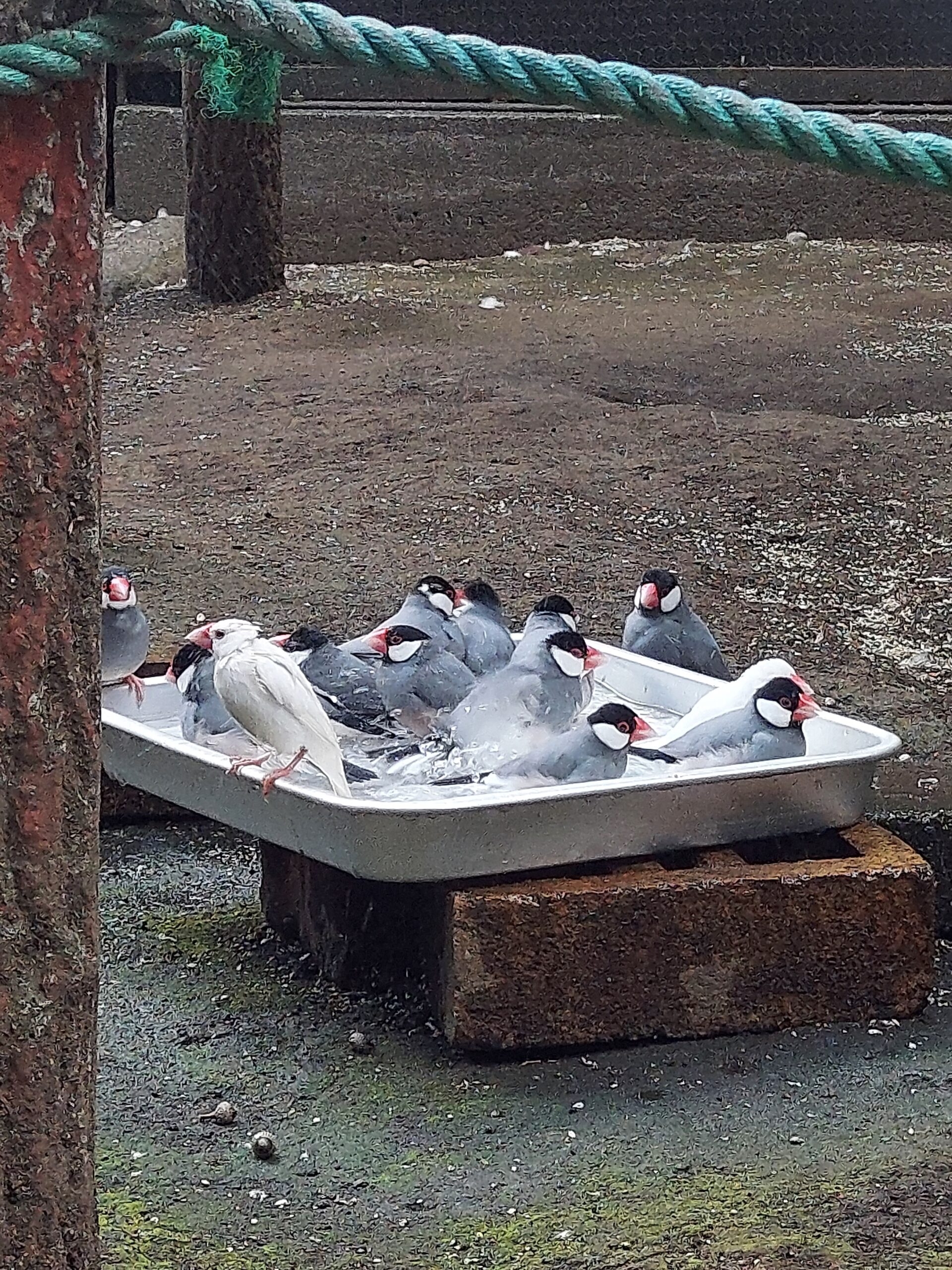 バードケージの文鳥たちは水浴びをすることが大好き!