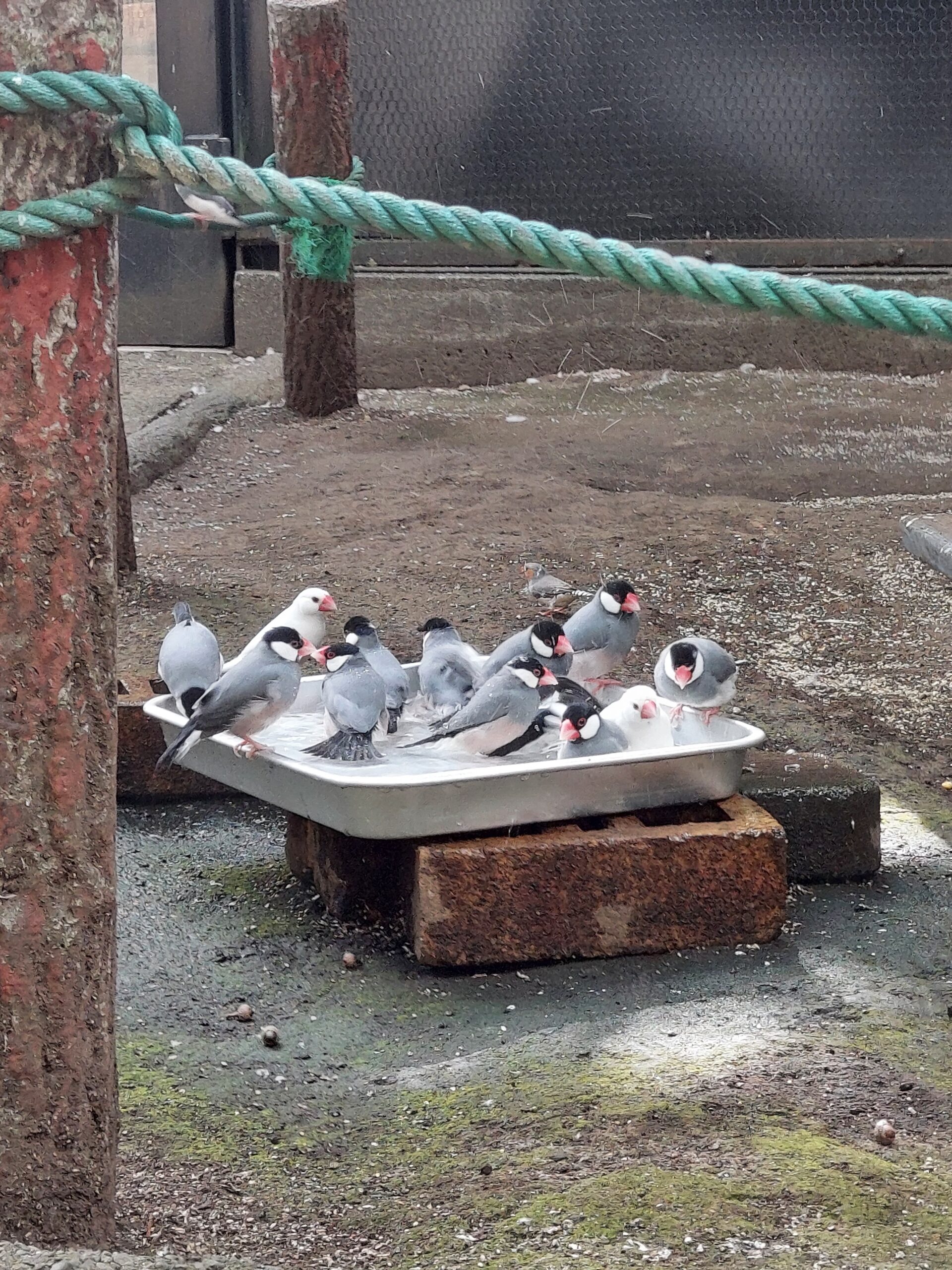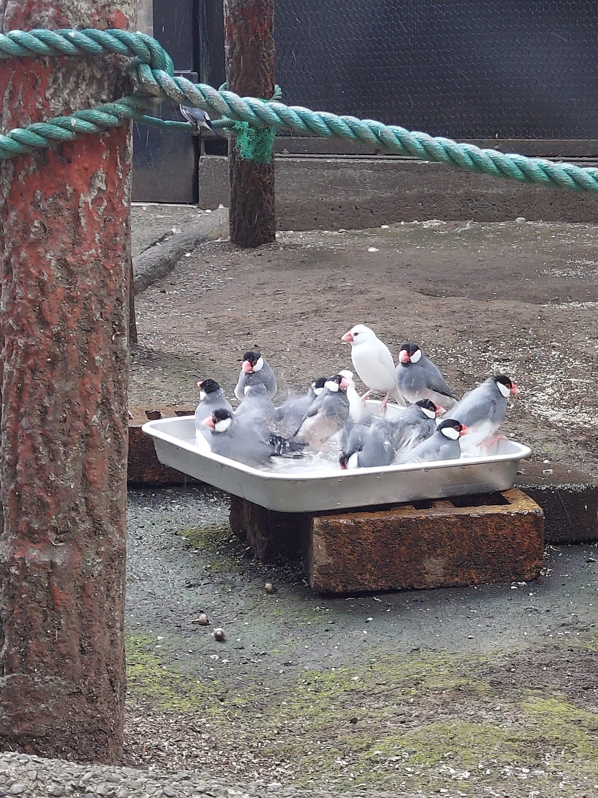 だんだんと寒くなっているので水浴びをしない個体が増えていますが、暖かい日の日中は水浴びをしているので広場に来た際はバードケージを覗いてみてくださいね😊