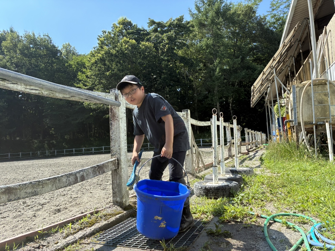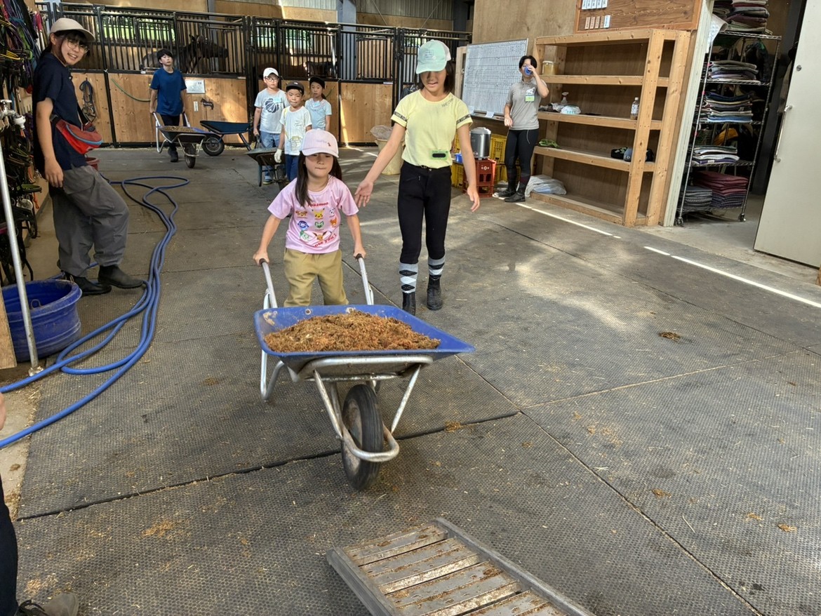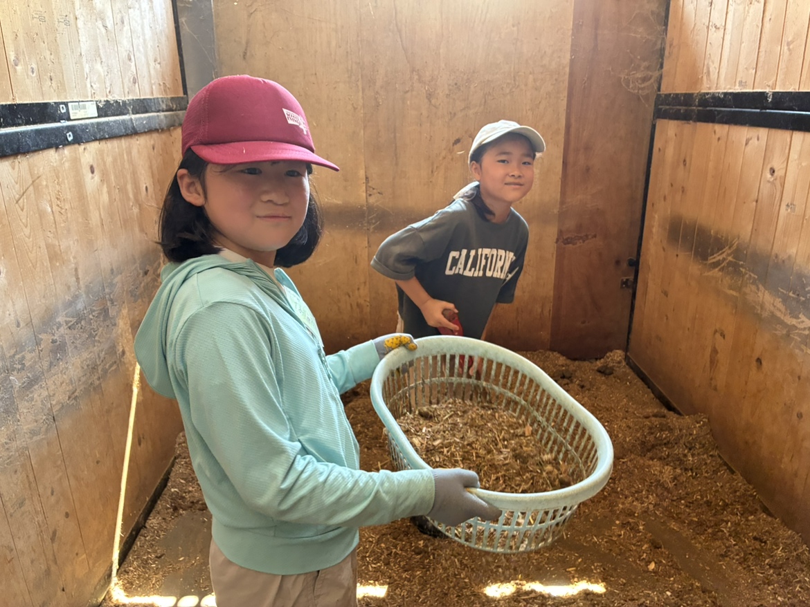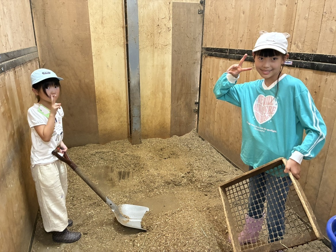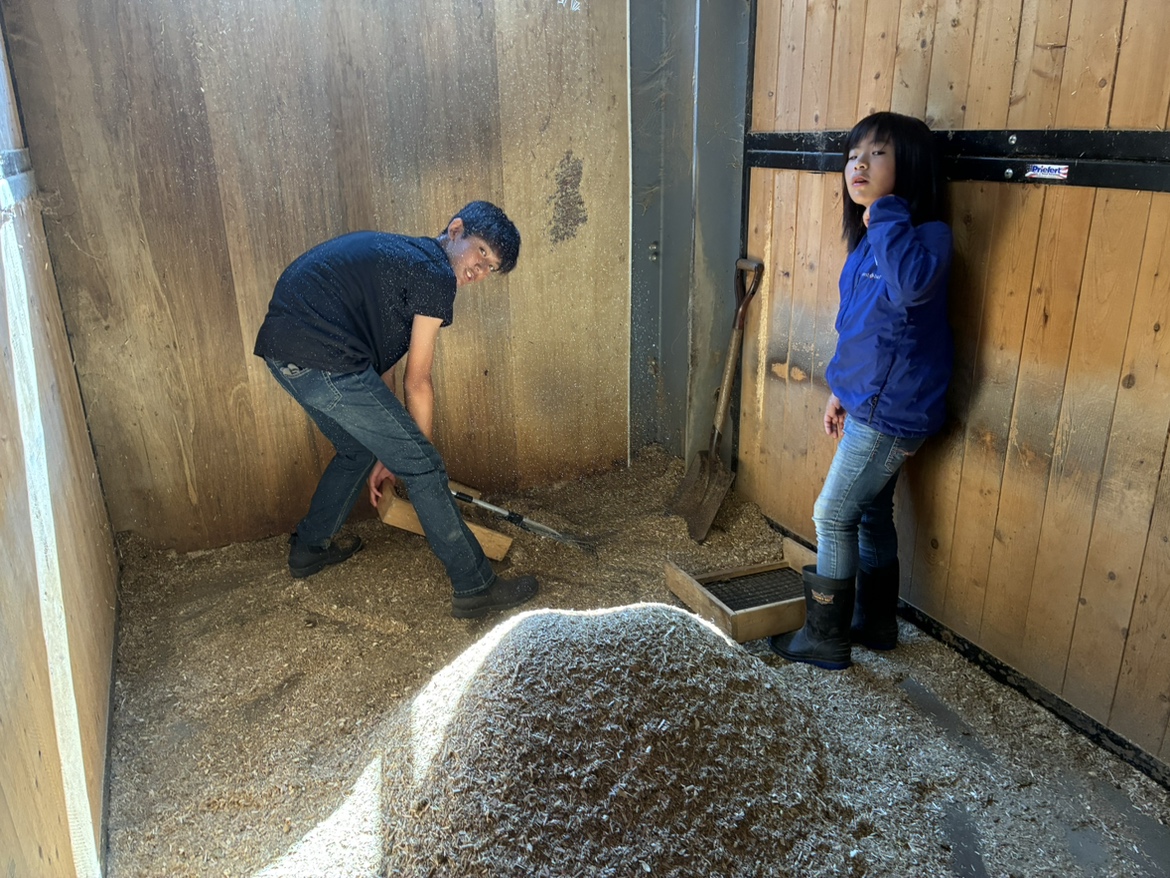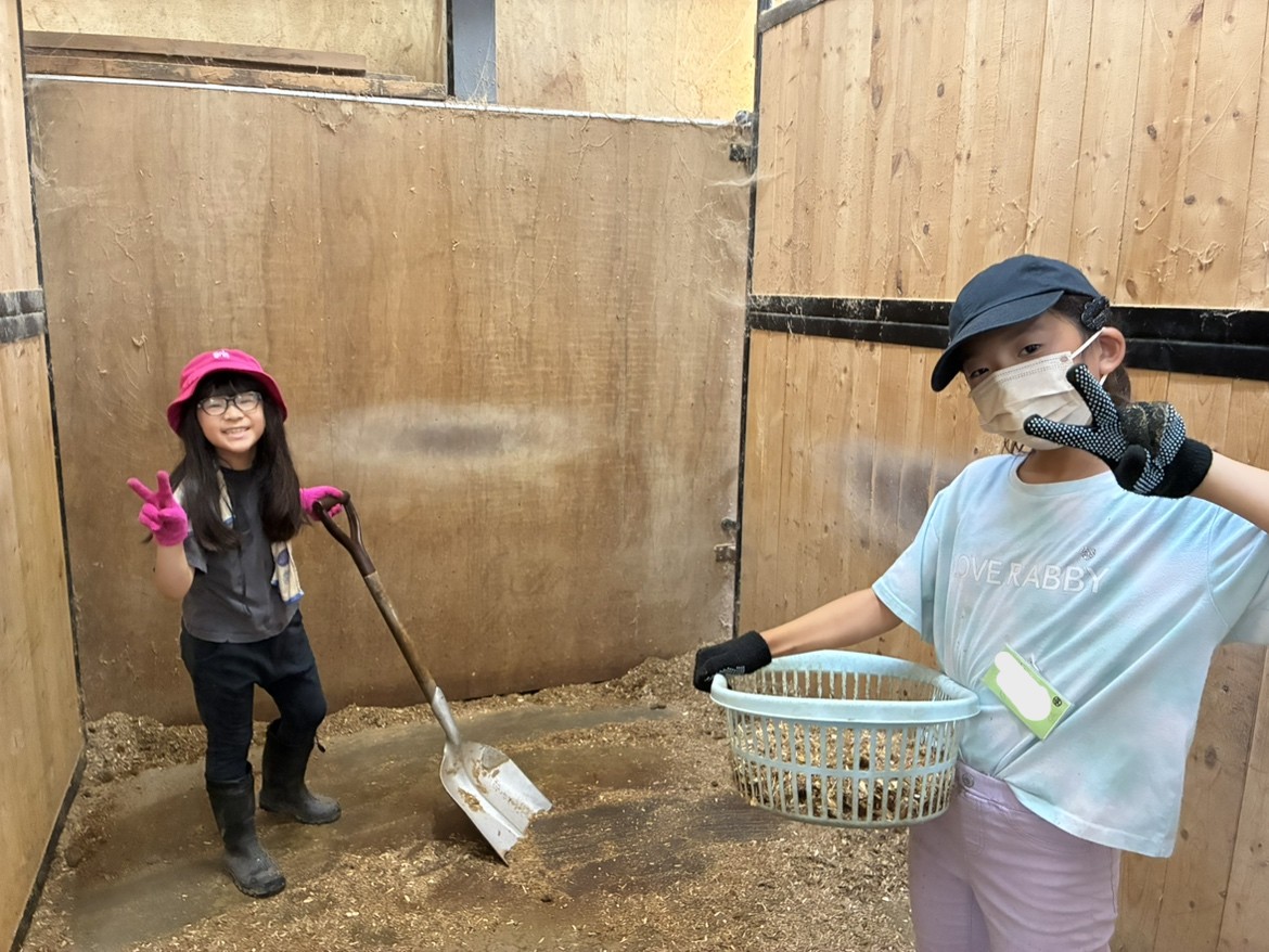 朝ごはん後の馬房掃除では、みんなの協力する姿を見ることができました。