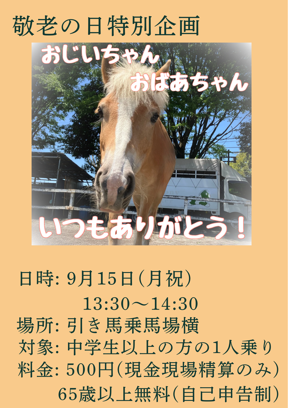 敬老の日ということで、65歳以上の方は無料で乗馬をすることができます!!