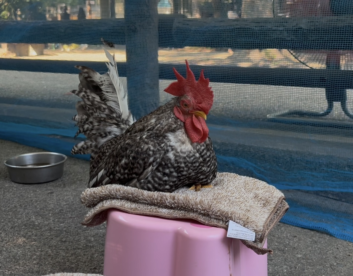小屋の中にある、保冷剤の上に座って涼んでいますね✨