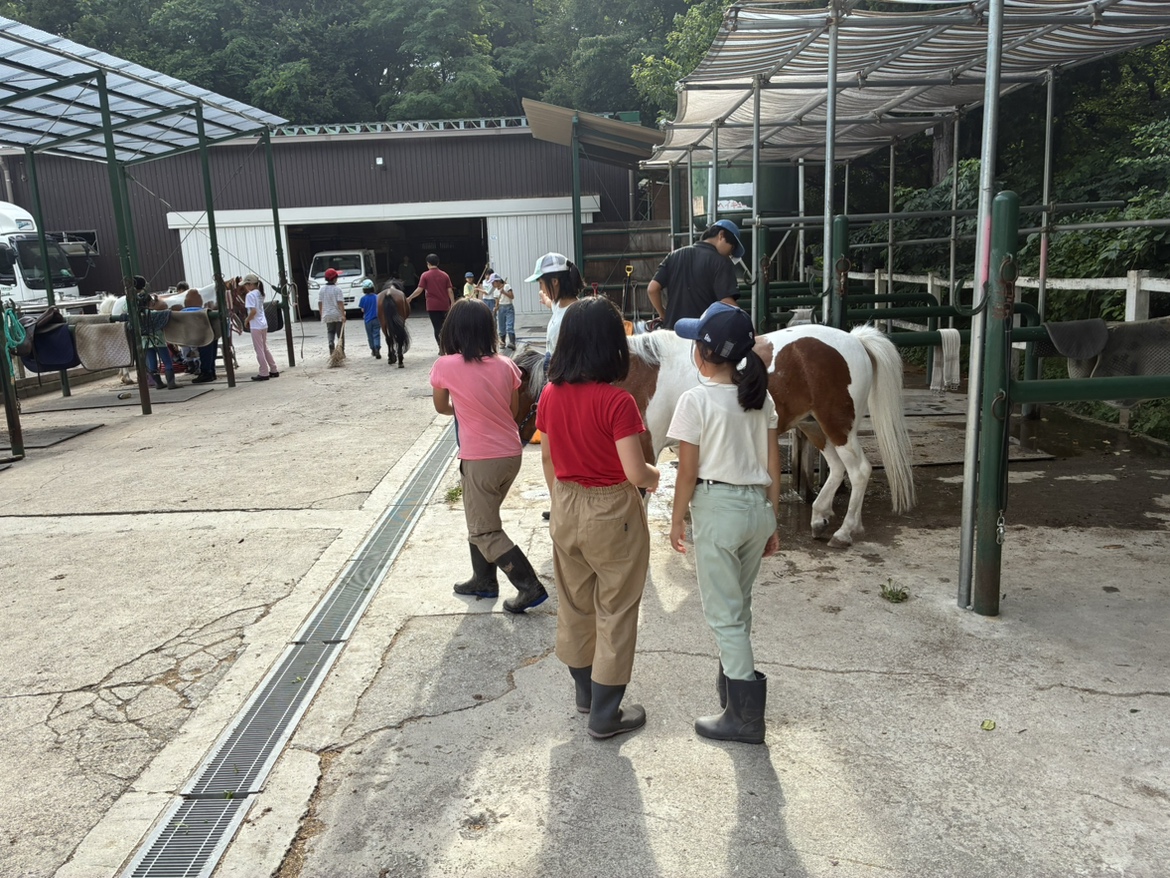 朝ごはん後の馬房掃除では、みんなの協力する姿を見ることができました。