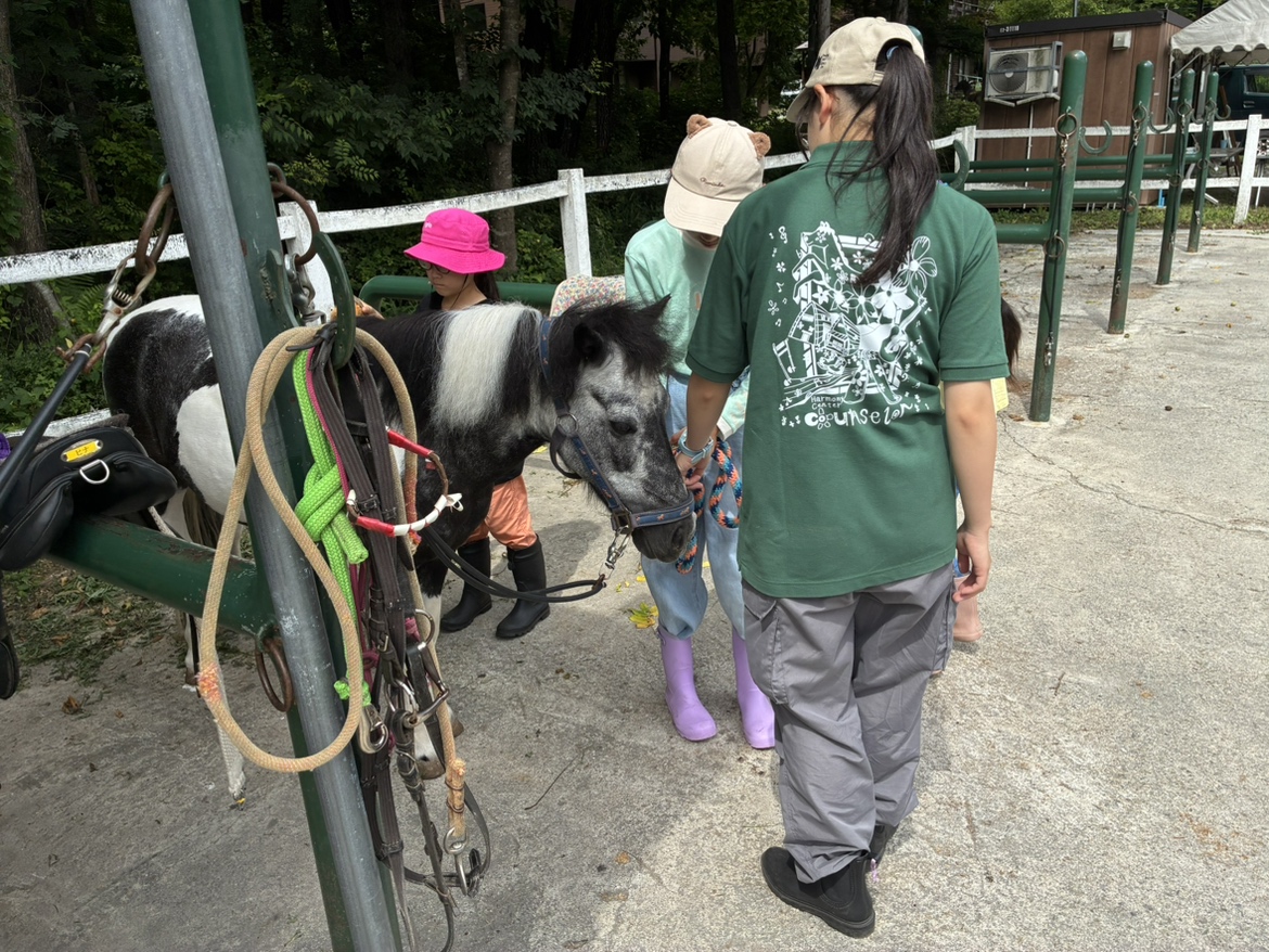 「3日間ありがとう!」と、丁寧に手入れと片付けをし、馬を馬房に返しました🐴