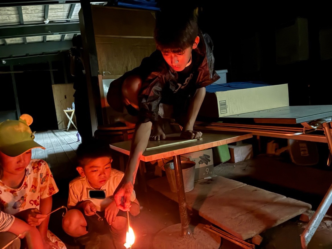 昨晩は、お夕飯を頂いたあと、みんなで花火づくりとペン立て作りをしました!
