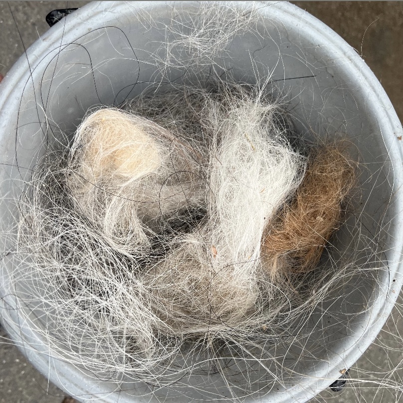 2頭の馬のブラシ掛けで抜けた毛はバケツ1杯分にもなりました‼️😮