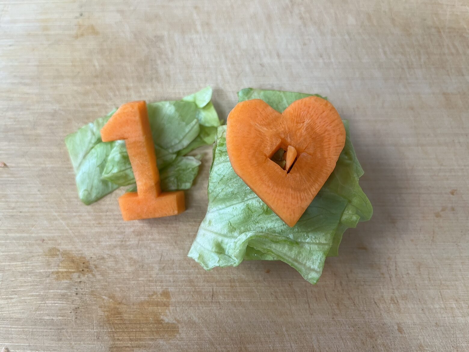 仲間入りして初の誕生日を迎えるスフレちゃんにニンジンとレタスでケーキを作ってみました。