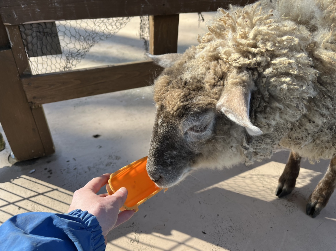 モコモコの時と触り心地が違うので、ぜひふれあいに来てください🐑