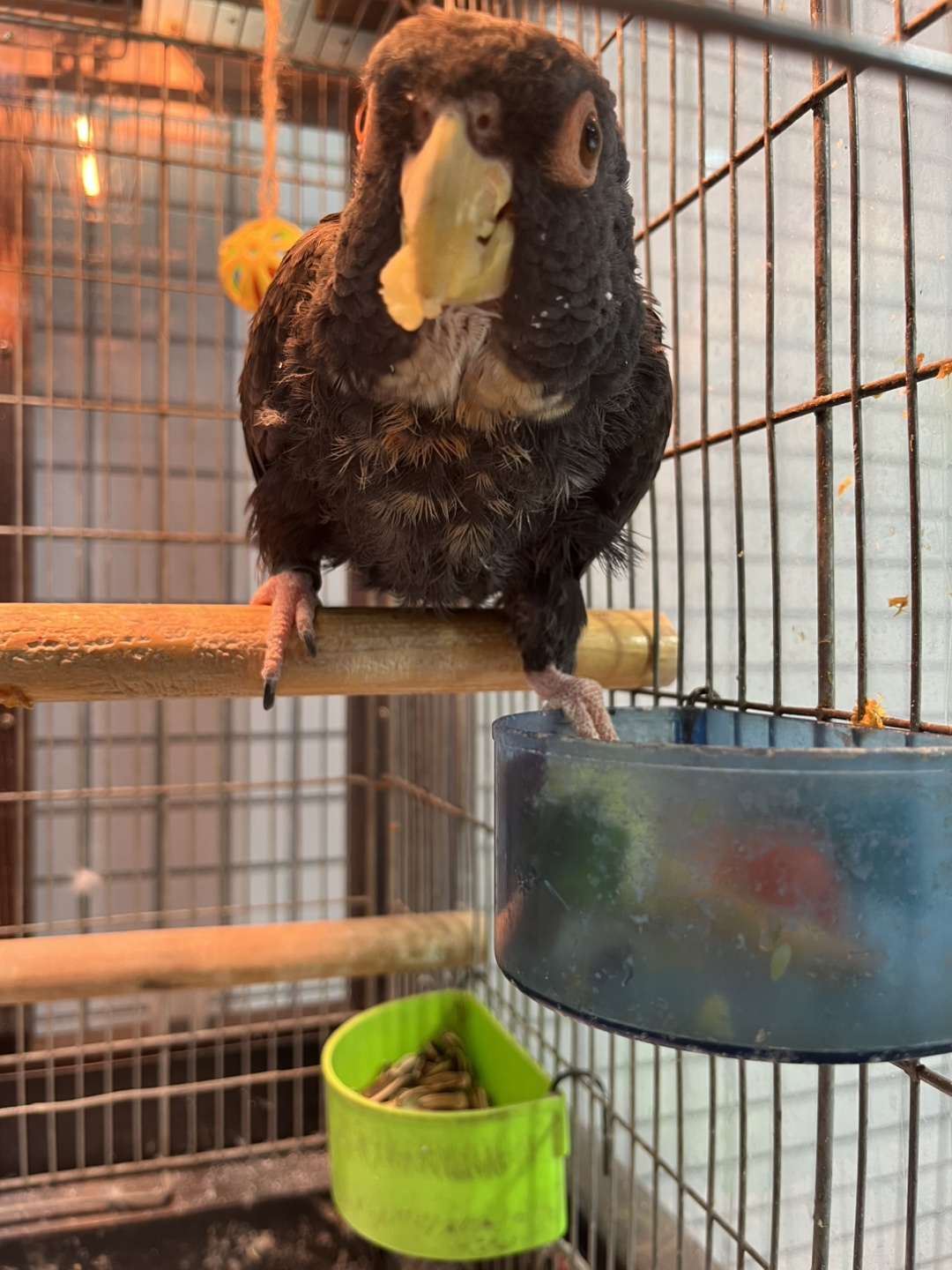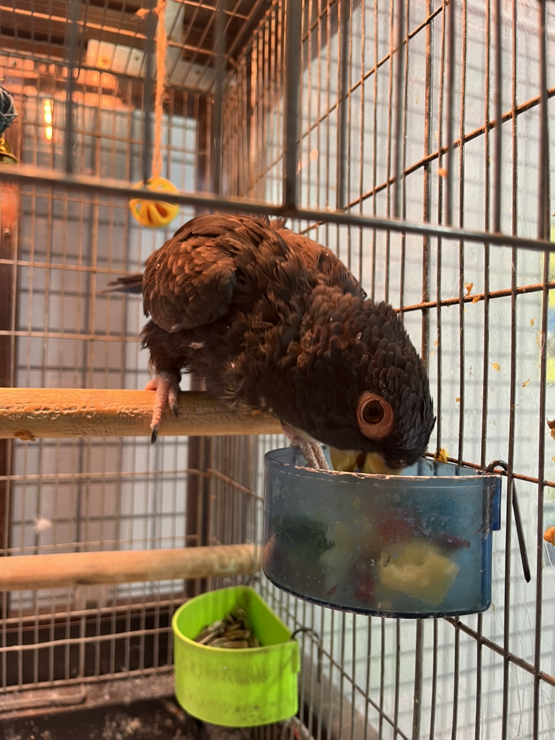 ドウバネインコのドーちゃんのお食事シーンをお見せします。