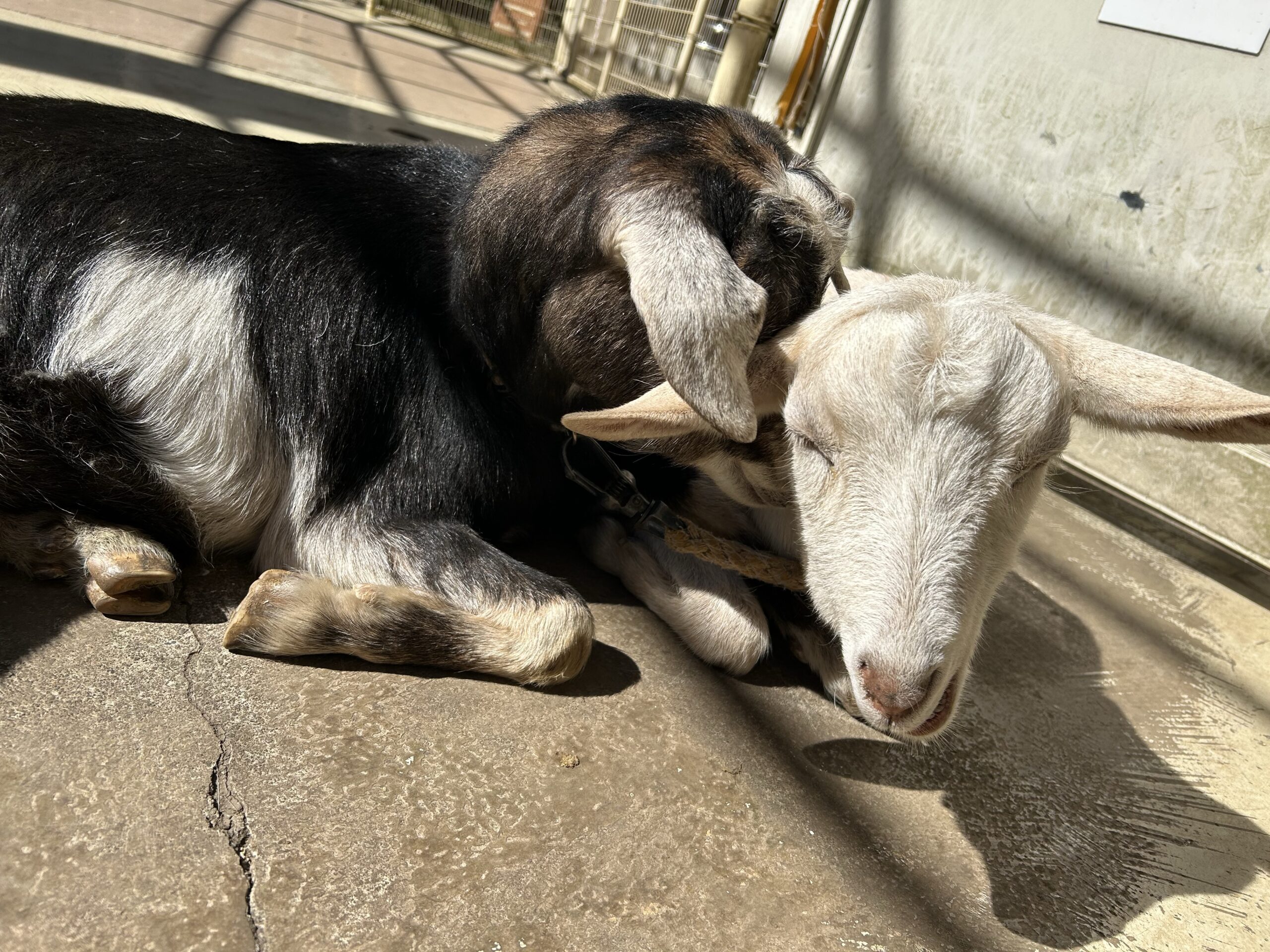 日差しを浴びて暖かそうなうさぎさん(みかんちゃん)🐇とヤギさん(シュガーくん)🐐