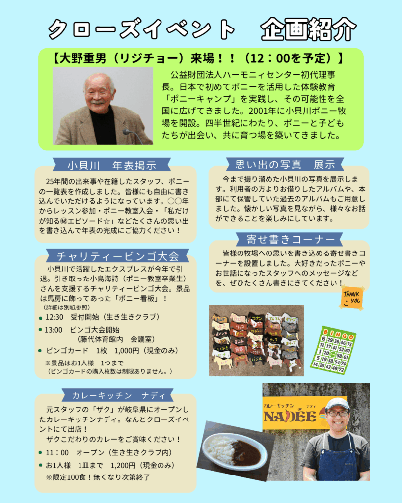 《小貝川ポニー牧場 クローズイベントのお知らせ》