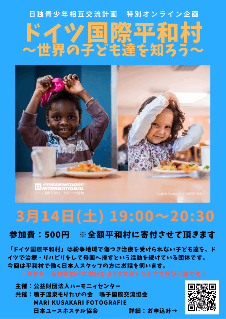 3/14 日独青少年相互交流計画 特別オンライン企画「ドイツ国際平和村から~世界の子ども達~」開催します!
